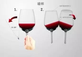 手拿着高脚杯,逆时针方向将酒杯稍稍倾斜(与垂直方向约成15-30度角),轻轻触碰杯肚,这个步骤就完成了。