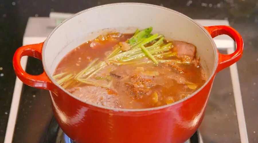 盖上盖子,用文火炖两个小时,直至牛肉酥烂。