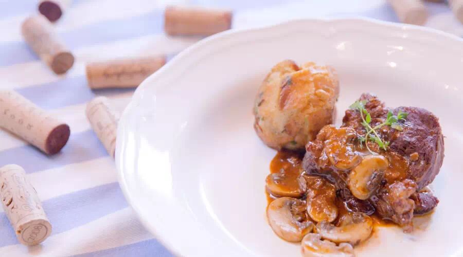 黑皮诺具有一定的酸度,香气优雅但不厚重。在它的浸润下,会让炖牛肉口感鲜嫩浓郁,法棒丸子香脆可口,肉汁和面包口感层叠丰富,让味蕾彻底沉醉。