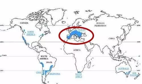 “旧世界”的国家上图中包括法国、意大利、西班牙、德国、葡萄牙、希腊、匈牙利。从地理位置上看就是欧洲的区域。