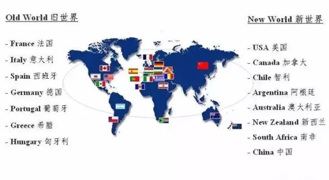 其实这个划分主要是更具葡萄酒的酿造历史来的,酿酒历史比较久远的,称为旧世界;酿酒历史比较短的,称为新世界。