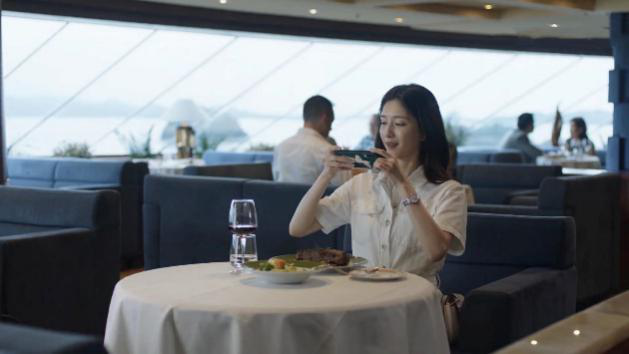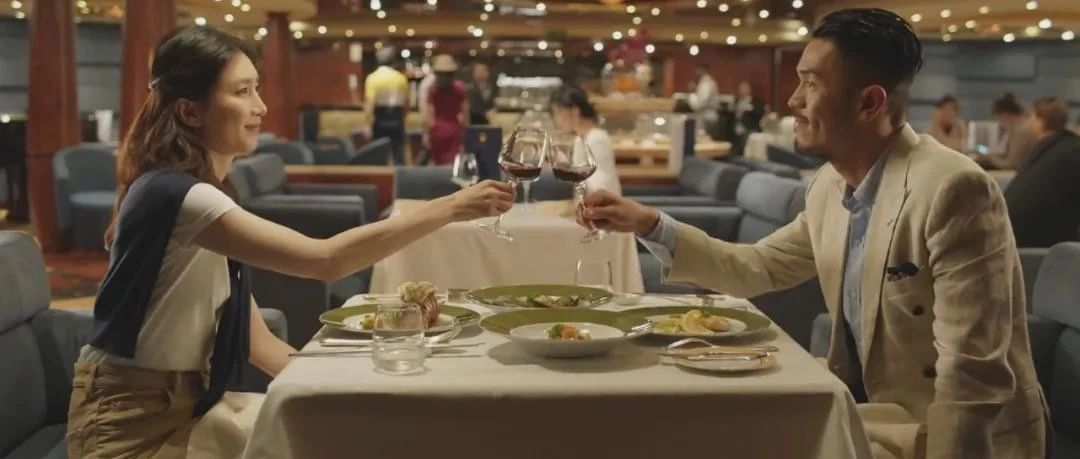 游轮上,王漫妮为辛苦的自己买了一杯红酒,窗外的大海湛蓝又开阔,按下快门的瞬间,她定格的时间是独属于她的自由。晚餐后,在船头吹着海风,就着微醺的酒劲起舞。