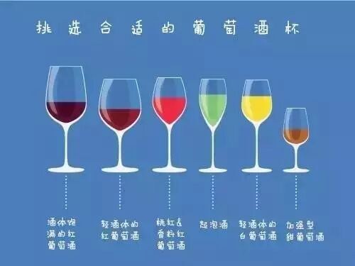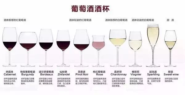 一般来说,波尔多杯适用于大多数法国产的波尔多红葡萄酒,勃艮第杯适合品尝果味浓郁的勃艮第红葡萄酒,香槟杯适合所有的起泡酒。较矮小的杯体则适合与甜酒搭配。