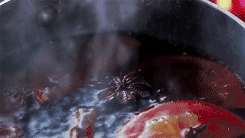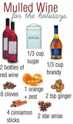 “橘子,肉桂,肉豆蔻,八角,放入便宜的红酒煮开,再加一小点白兰地。”