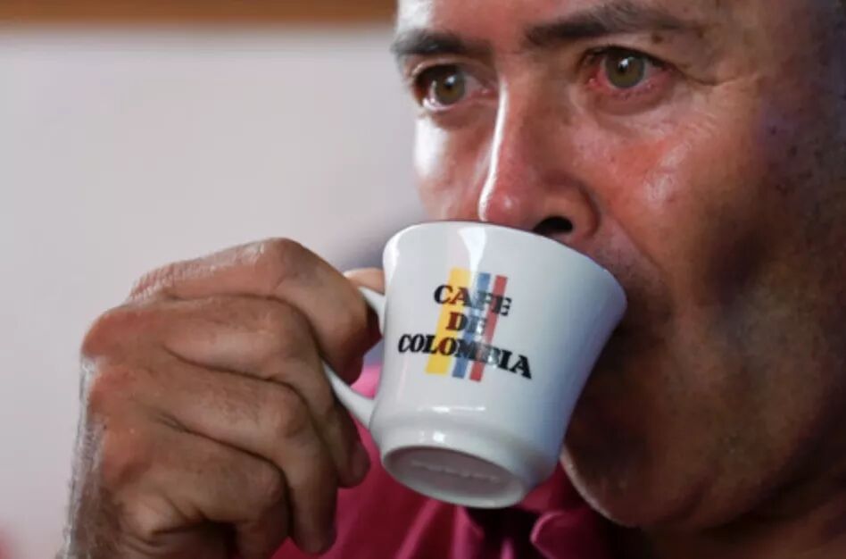 5月11日,在哥伦比亚桑图阿里奥,一名男子喝咖啡。 新华社/法新