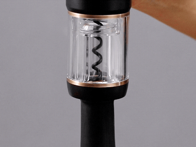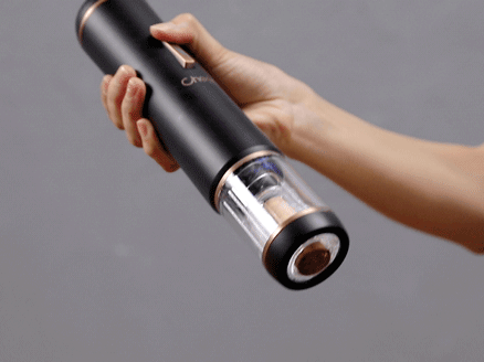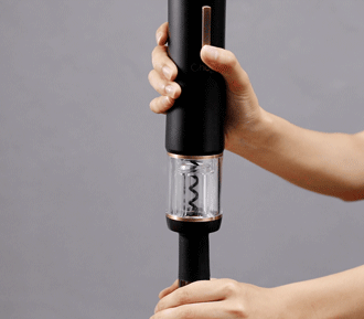 操作时,只要将开瓶器对准瓶口,按一按按钮,就能看到木塞被缓缓拔起。