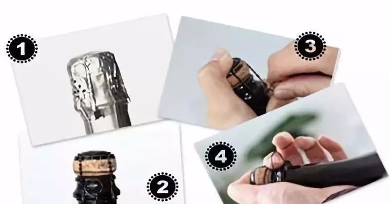 1、左手握住瓶颈下方,瓶口向外倾斜15度,右手将瓶口的铅封揭去,并将铁丝网套锁口处的铁丝缓缓扭开。