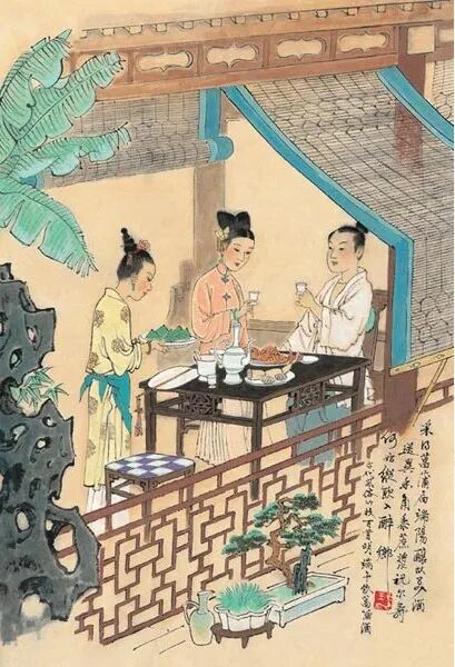 饮菖蒲酒(王弘力,《古代风俗百图》)