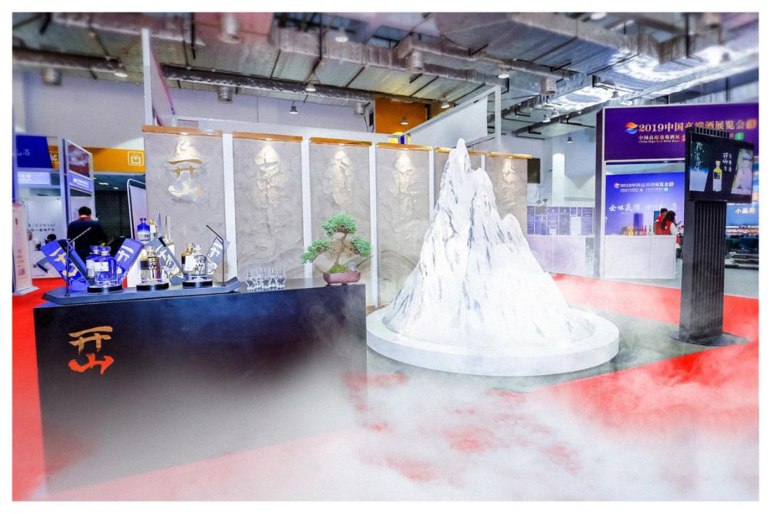 今年中酒展期间,开山再度祭出其另一杀手锏——昆仑酒雾。与“暗箱操作”相似,“昆仑酒雾”亦是为体验者打造独特的品评环境。它模拟昆仑玉珠峰及其周边唯美山景,它以昆仑“六月映雪”奇观为原型,在展台中央勾勒出“银装素裹,云雾缭绕”般的仙境。水墨般书卷意境中,观众能最直接体会到酒雾蒸腾带来的清新花果芬芳,开山还利用闻香试纸,更进一步打造独有的净香品评体系。