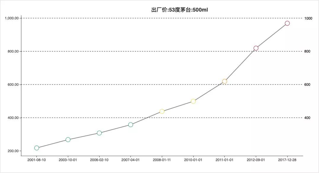 茅台也开启了自己的黄金时代。这十年间,茅台的出厂价先后上调八次,从2002年的218元一路涨至2012年的819元,零售价从280元左右飙升到2000元。
