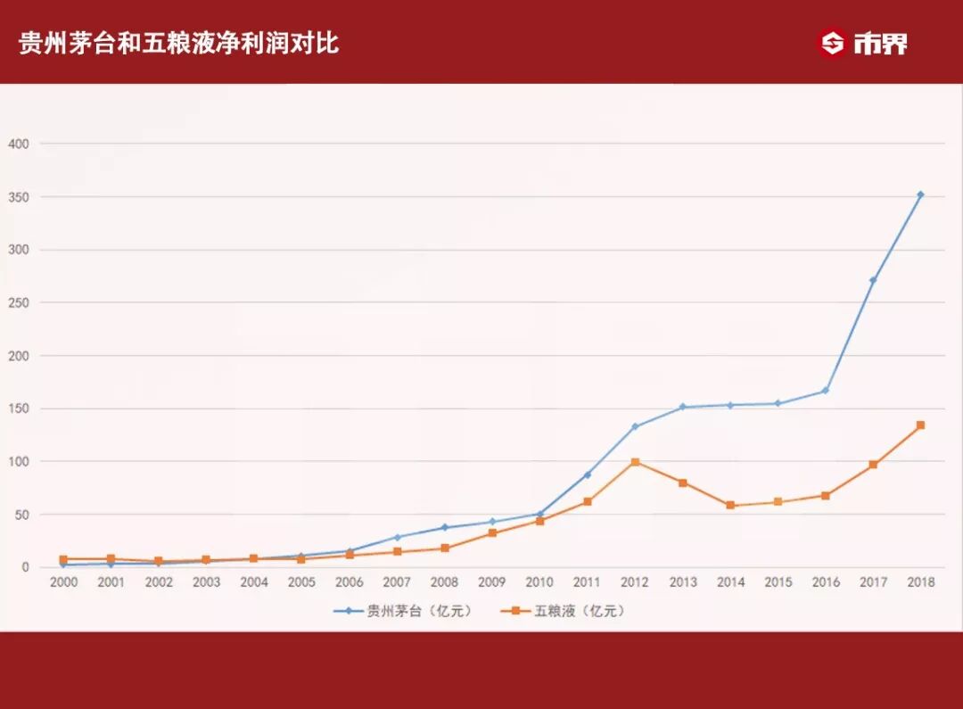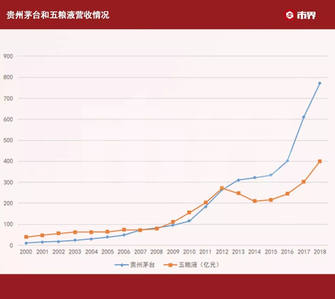 这是贵州茅台在营收上第二次超越五粮液,也是五粮液正式让位茅台屈居老二的开始。从此,五粮液的业绩再也无法与茅台抗衡。