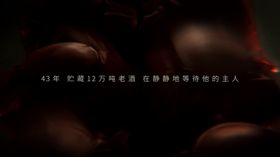 再接着,出现字幕及画面音“43 年,贮藏 12 万吨老酒,在静静等待他的主人”。