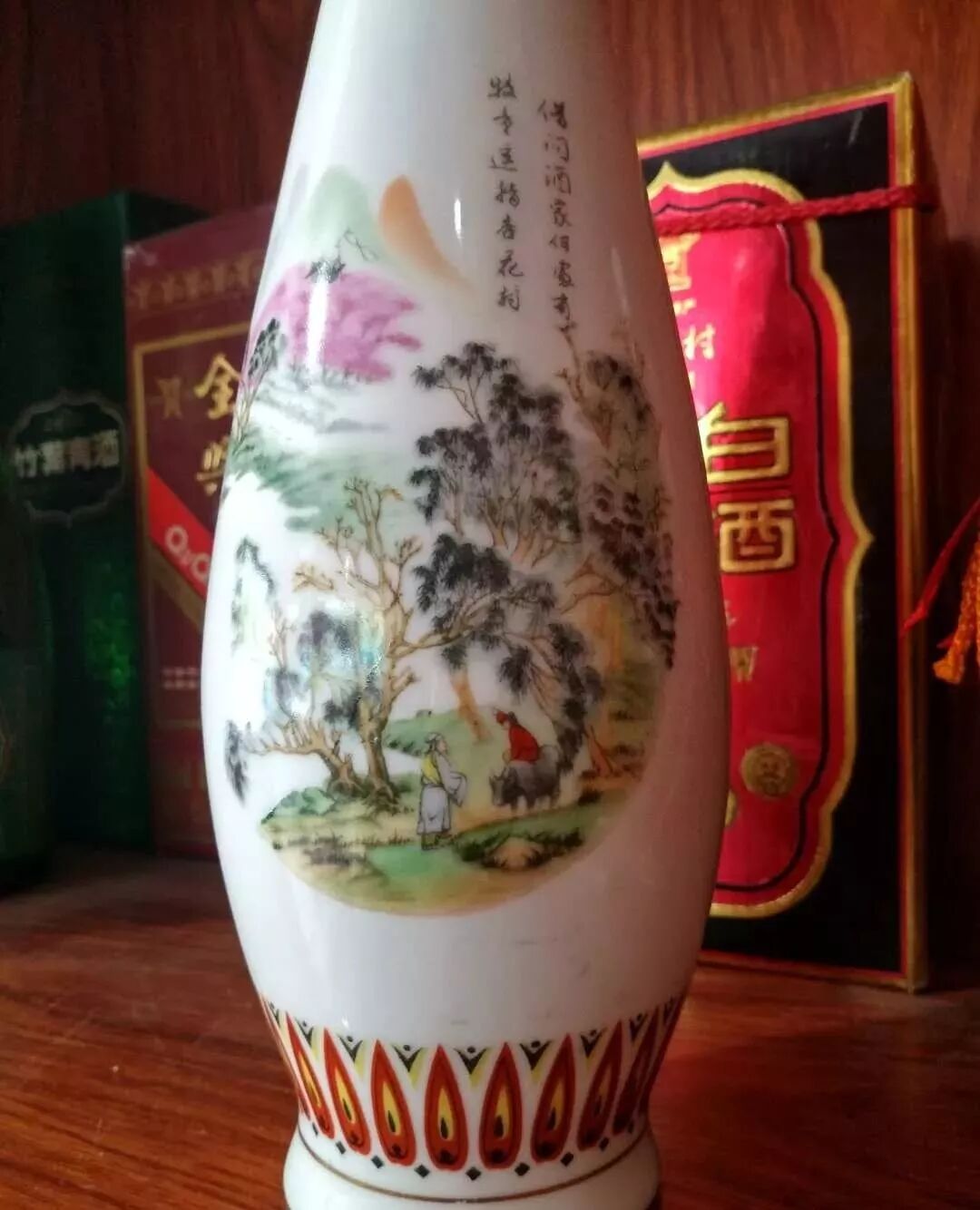 瓶盖侧面还印有牧童骑在牛背上答问路人“遥指杏花村”的写意画面,印刷精致古朴,封口螺纹整齐严密,倒置酒瓶,滴酒不漏。