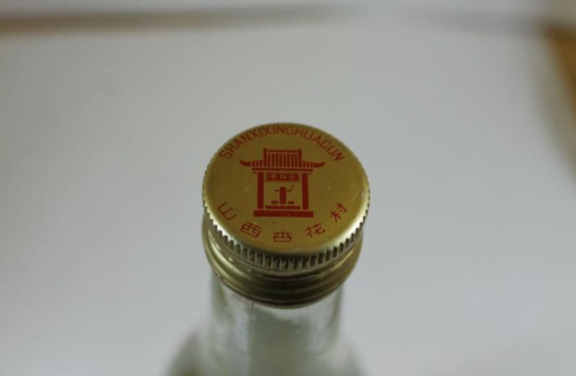 还有一种瓶盖也是铝制的,但是顶部和瓶盖外侧都印有“SHANXIXINGHUA”和“山西杏花村” 的字样。