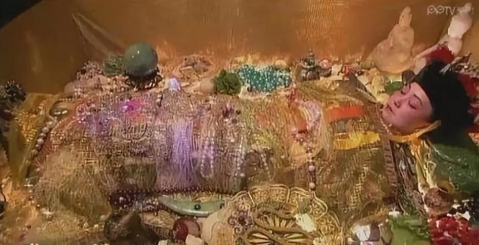据心腹大太监李莲英的《爱月轩笔记》记载和陵墓发掘资料作证,慈禧陪葬的翡翠精妙绝伦,空前绝后,在她尸体脚下有翡翠西瓜两个,长约15--20厘米,皮是翠绿色的,瓜瓤是红色的,其中还有几粒黑色的瓜子,一切都是天然俏色,据说当时的估值在500万两白银。