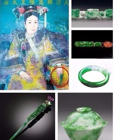 慈禧太后是世界上占有珠宝量最大的女人之一。但她唯独对翡翠很青睐,把翡翠看得比什么珍宝都贵重,对翡翠的热爱达到了几近疯狂的程度,慈禧性好豪奢,甚至挪用军费去买喜欢的古董珍玩,珠宝玉石,锦衣华服。她用过的玉饰、把玩的玉器数量多达足以装满 3000个檀香木箱。