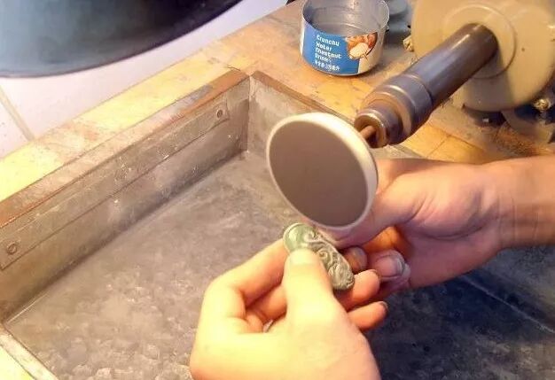 用毛刷沾上钻石粉高速抽打雕件的表面。