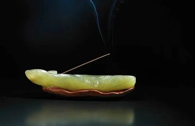 例如,作假者用另外一个质量差、低档货的玉石料的尖端部分去砸那无绿色的白道,不断地边砸边造假皮。