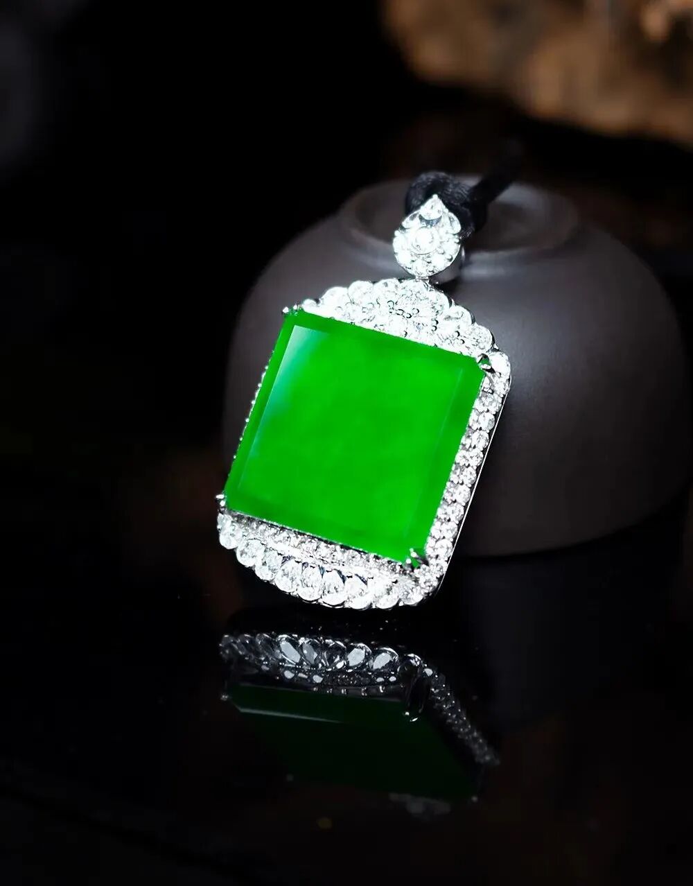 “素面”,顾名思义即只做了切形、打磨、抛光的珠宝几何面,它来自料子中最完美无暇的一部分。在选择翡翠素面时,种水要细腻,光泽度、鲜艳度、透明度、纯正度缺一不可,就如玻璃种一般,纯净透明!