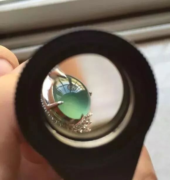 我们还可以用一个白瓷碟或垫有白纸的碟子,内盛清水,将翡翠浸入水中,用镊子夹住戒面,使其侧面向上,用放大镜或显微镜认真查看。