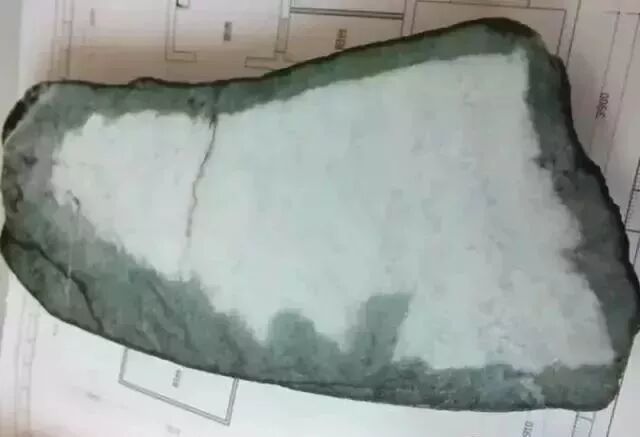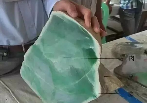 如上图是一件比较常见到的没有猫尿,比较正常的翡翠原石毛料!