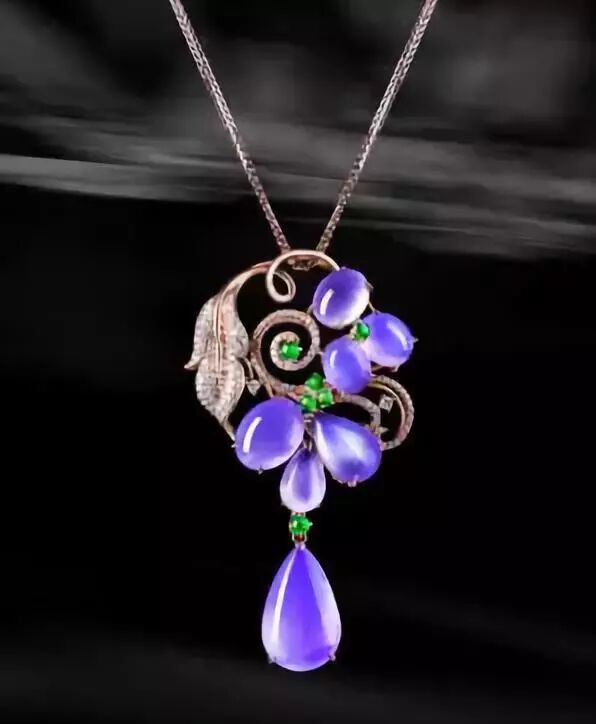 紫色翡翠:紫色翡翠的变色则是因为其内部含有的铁元素和锰元素了,基本上它的含量比例决定了紫色的深浅。