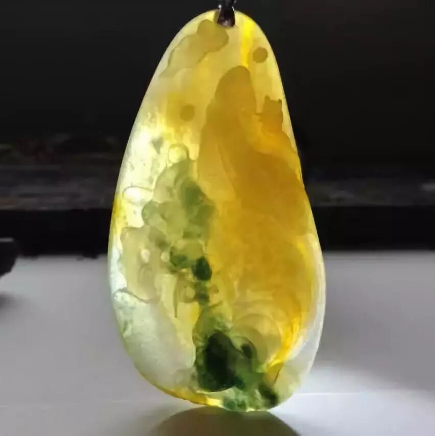 黄色翡翠:黄色的翡翠就非常的好理解了,他是因为褐铁矿物质所导致的,这种颜色的翡翠看上去非常的淡雅,而且非常地上相,拍出来的照片色彩也是非常美丽的。