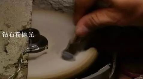 过细砂,钻石粉抛光,这一步不仅能把不太圆润的弧度修正,还对戒面进行了粗抛光的处理。