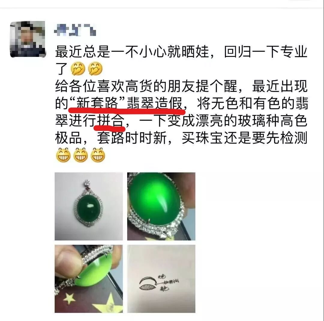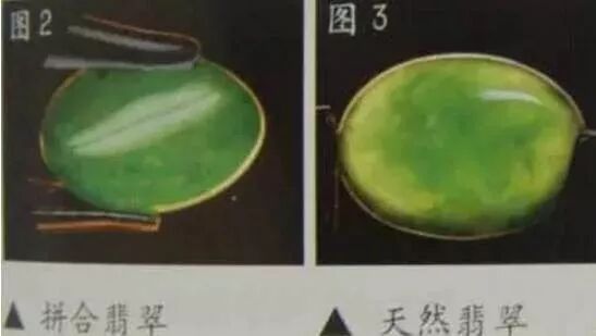 之前有讲过一些商家为了让翡翠的颜色看起来更绿,就会在翡翠下面垫一张绿色玻璃纸。这拼合翡翠其实与垫底翡翠有着异曲同工之妙,不过方式更加多样。
