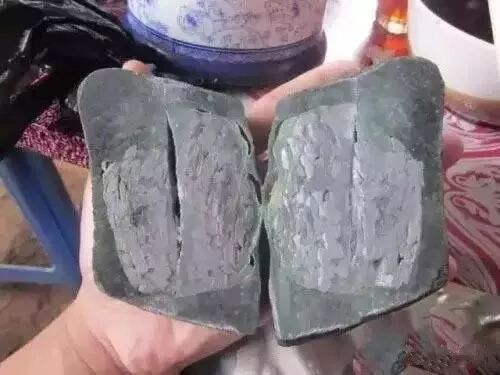 无论是哪种方式,三部分结合起来,最终成品就是一件有色有水的极品翡翠,体积也足够大,看到它谁能不动心呢?有心的商家,表面那块翡翠,用的种再好点,骗的钱就更多了。