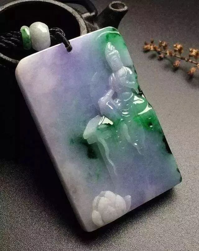 纯色的翡翠玉料,色彩一般都比较淡,所以,紫色的玉料通常被视为“柱料”或龚花料。