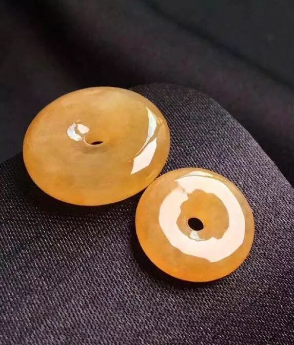 天然又优质的黄翡被人称为金翡翠,呈橘黄色或蜜糖色,晶莹透亮,色鲜又匀,种水上乘,属黄翡之上品,较为罕见。