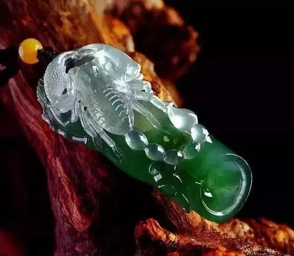 蝎子和蛇一样具有毒性,现在除了饲养一般很少见到野生的蝎子,蝎毒可导致抽搐引起中风。翡翠蝎子具有富甲一方的寓意,又谐音“携子”,喻示贵子降临,所以人们认为佩戴翡翠蝎子能够百毒不侵,避邪趋吉。