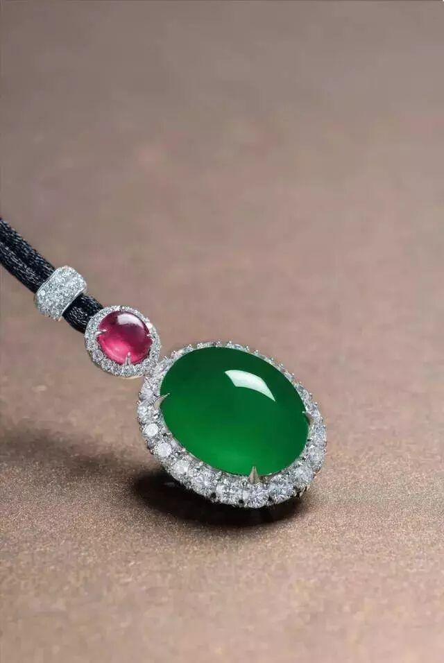 翡翠内部所含的微量元素不同,颜色也有所不同。翡翠的颜色,有大片分布的,也有以小点形式存在的。