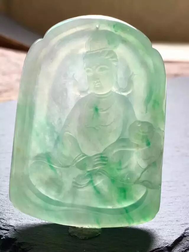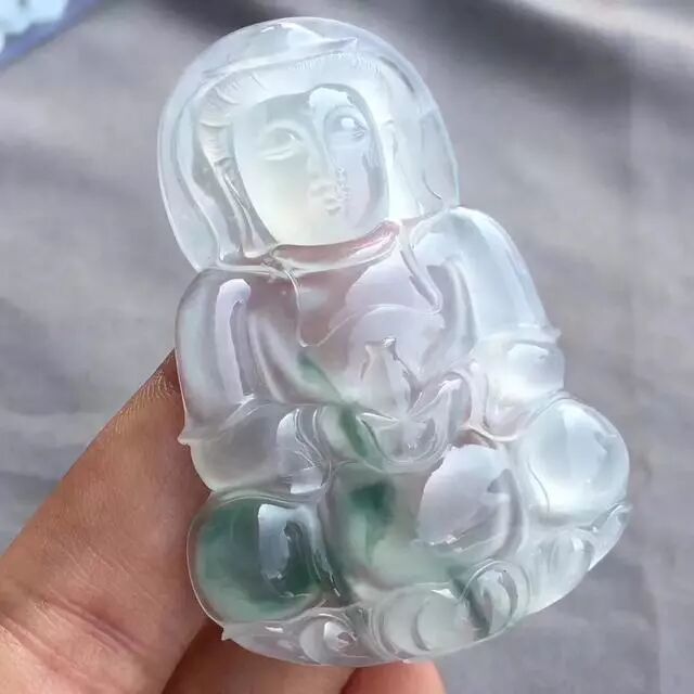 脸:观音属于人物雕像,对脸的要求比较严格。一定要选择脸部干净,无裂隙的翡翠观音。