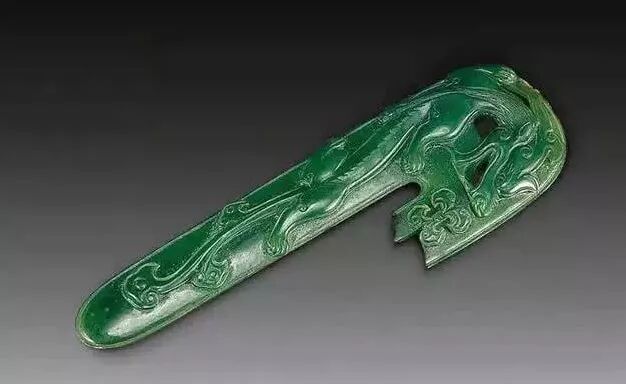 龙钩是衣服上的带钩,古人束带之用,是束腰时系带的用具。龙钩一头雕成龙头,一头雕整只小龙,也叫“螭虎”。早期龙钩多用白玉制作,后来也用翡翠或玛瑙制作。