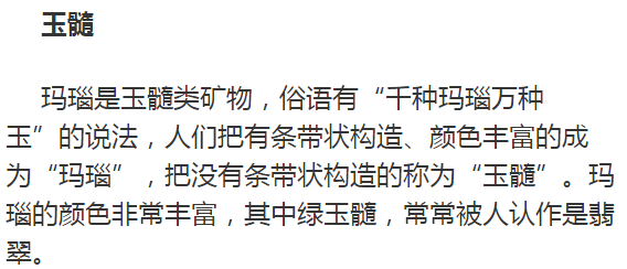 翡翠水灵,玉髓油润绿玉髓无颜色均匀,无变化玛瑙多有较规律的纹路。