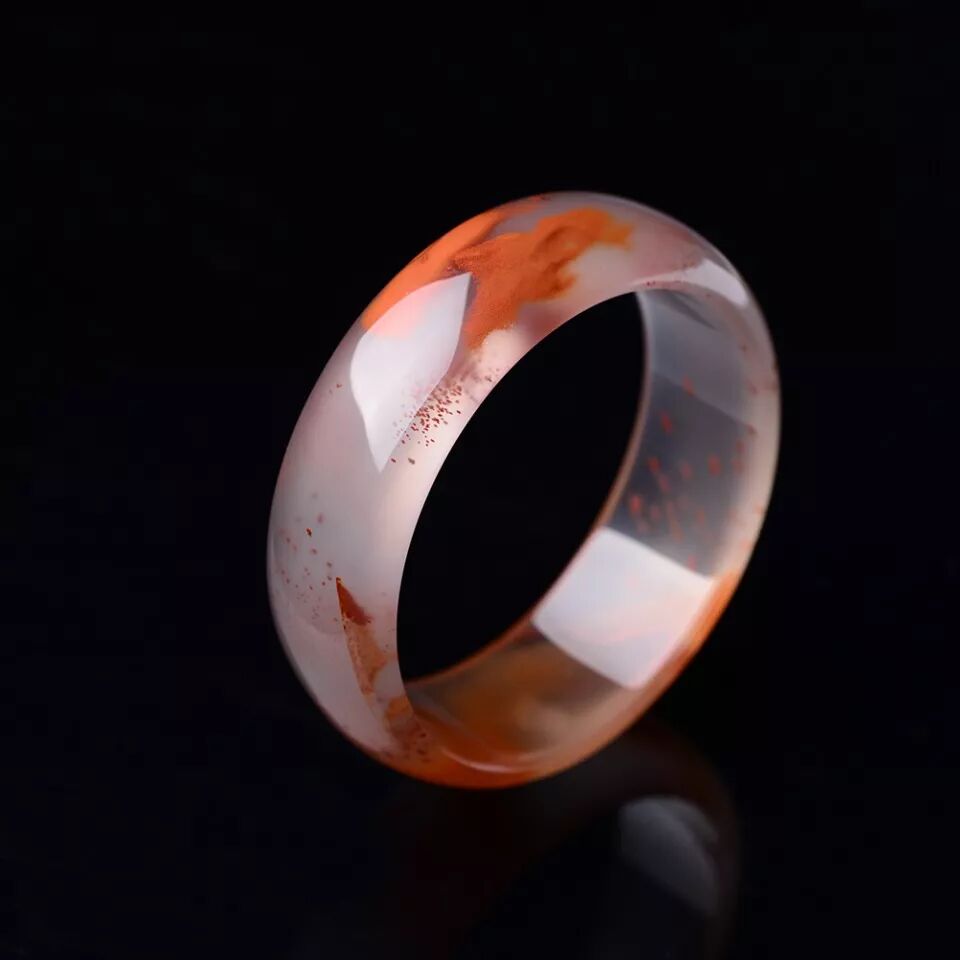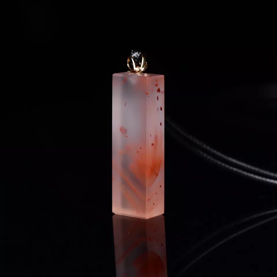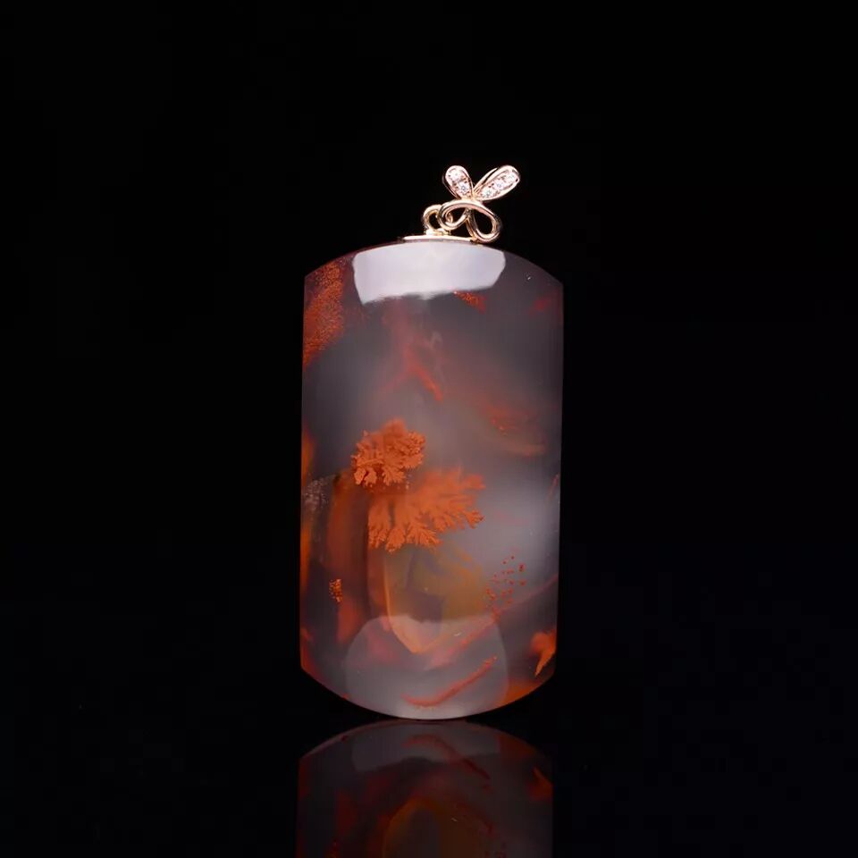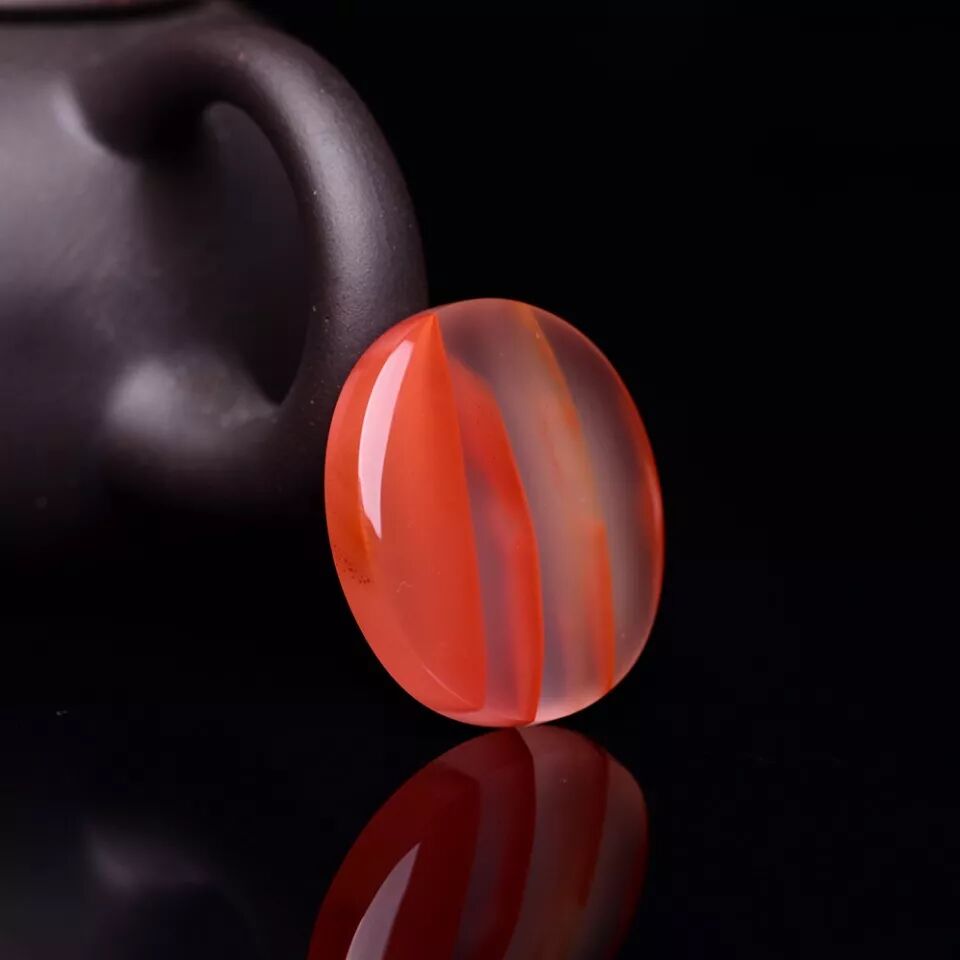 冰飘南红的质地如同自然界中的冰,常有带红、带朱砂点、水草等散布其中,飘逸清新脱俗,故被人们形象的描述起名冰飘。