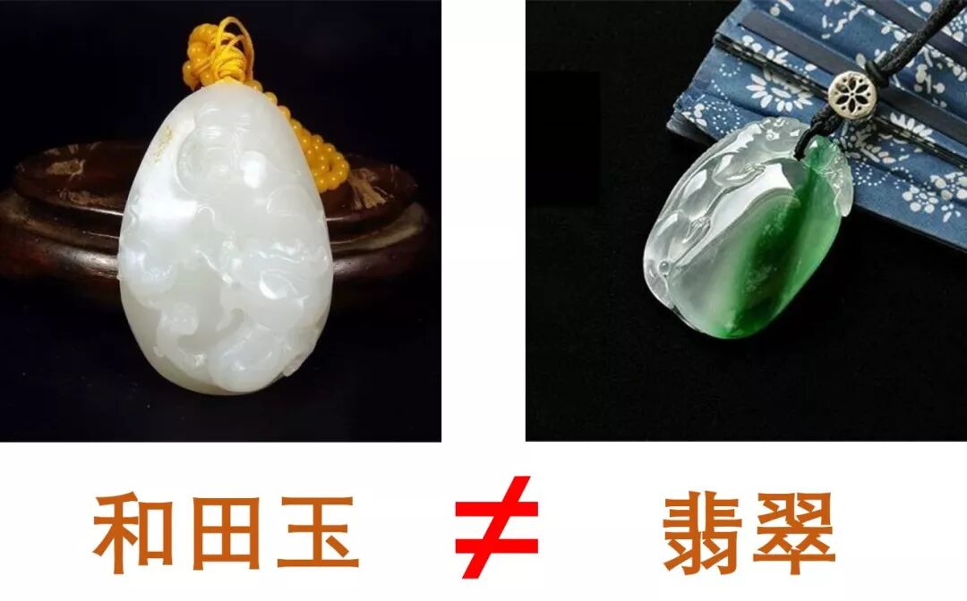 和田玉和翡翠是截然不同的两种玉石,和田玉讲究的是半透明的温润质感,表面呈现的是强弱不一致的油脂光泽,这样的光泽是柔和、温暖的,是温性的玉石。翡翠讲究晶莹剔透,反射光泽呈现的刚硬的玻璃光泽,光泽中透露着冰凉的寒意,是寒性玉石。