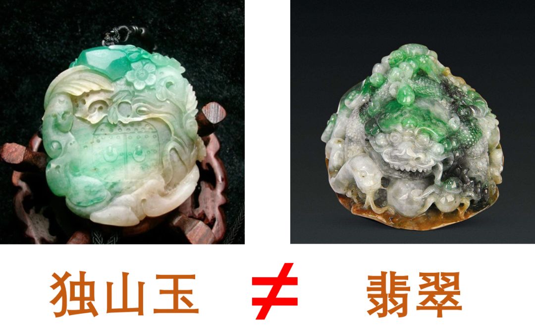 南阳独山玉是我国的一个古老品种,多含黝帘石,硬度、颜色、质地与翡翠相差不多,极易混淆,但难有雪片、苍蝇翅等翡性。独山玉水头足的多闪蓝,水头不足的绿中多带黄色;把独山玉和翡翠放入二碘甲烷中,翡翠悬浮于中央,而独山玉则上升,浮于液体表面。
