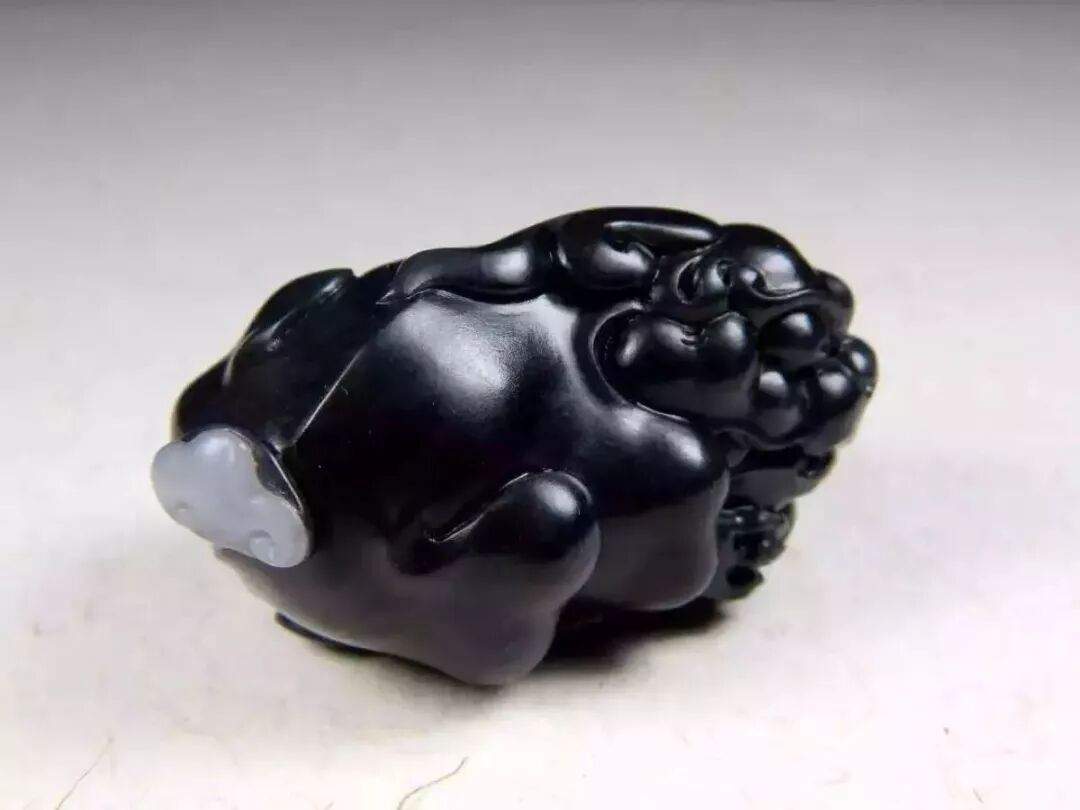 在墨玉中,均匀分布的全墨自然是最好的。片墨用以俏色巧雕,也同样价值不俗,点墨则很难利用,往往还会被视为杂质而剔除。