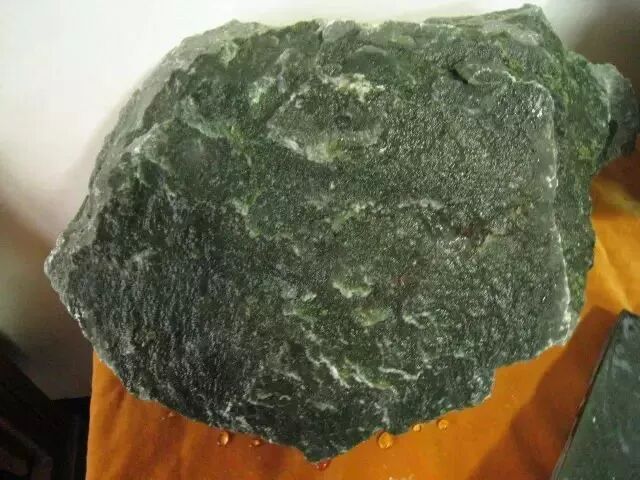 玛纳斯碧玉的黑点多数成片。和田黑碧玉远看漆黑,近看带绿,边缘微透光、较软、石性大。