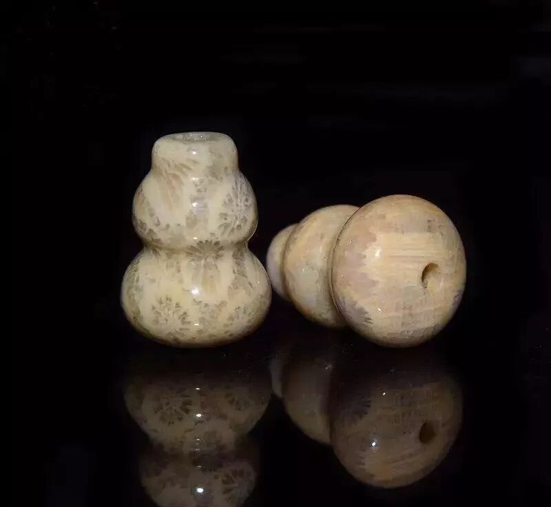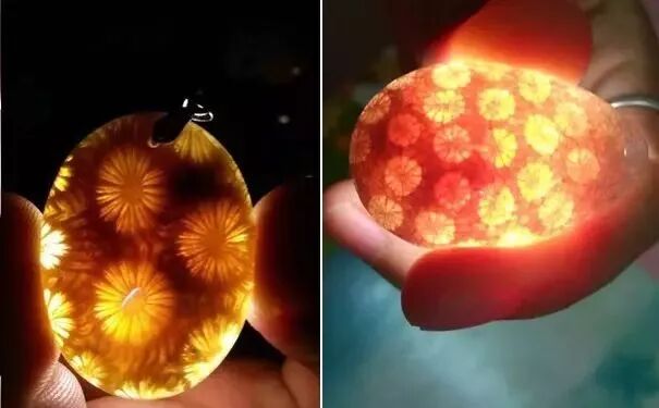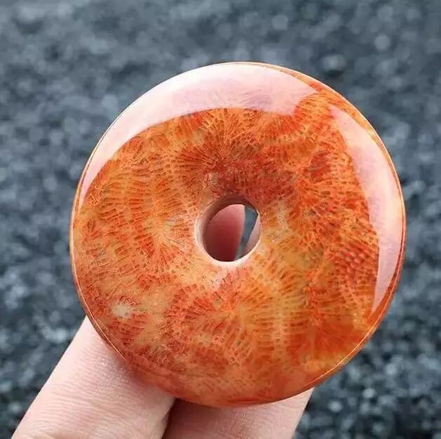 所以,珊瑚玉是来源于珊瑚的,是有生命的。这种玉化的过程很像玉化砗磲,最后形成半透明的玉石状,而且也属于“有机宝石”的品类。