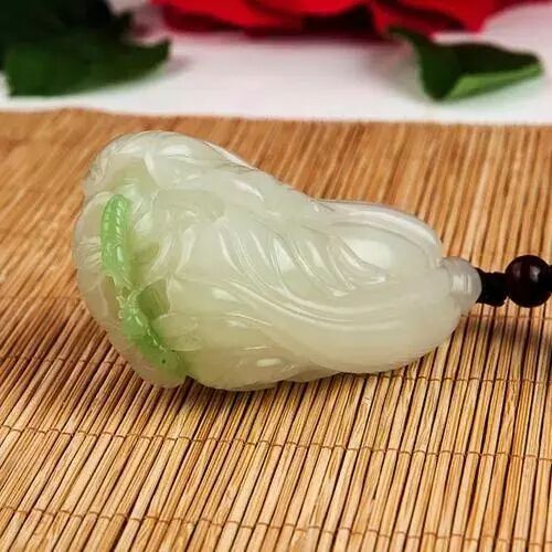 它既有和田白玉的温润、庄重,又有绿色翡翠的翠色欲滴。