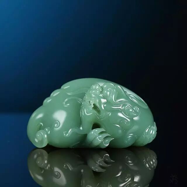 业内人认为它是一种称为青中泛蓝色的和田玉,随着光线的变化,还会出现不同的颜色,有时候是浅草色,有时候是蓝绿色,有时候是灰青色。