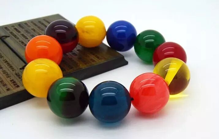 如果真的这样想那就错啦,别看这中东蜜蜡五颜六色的很唬人,其实本质上,就是一串染色的塑料珠子!跟蜜蜡根本没有任何关系。