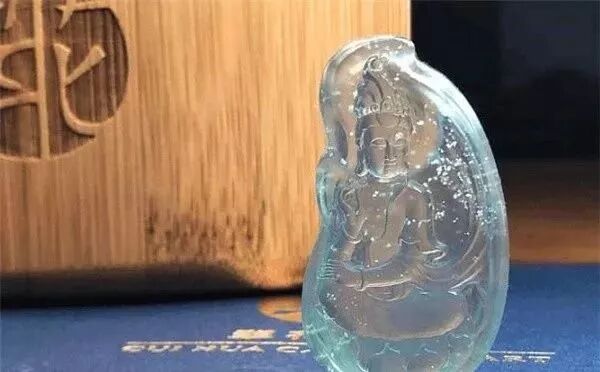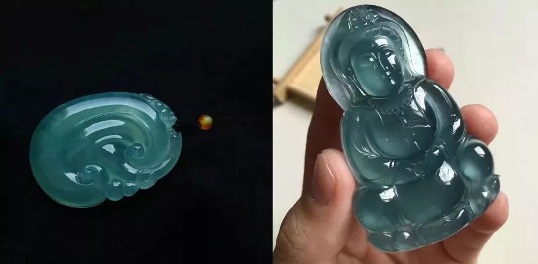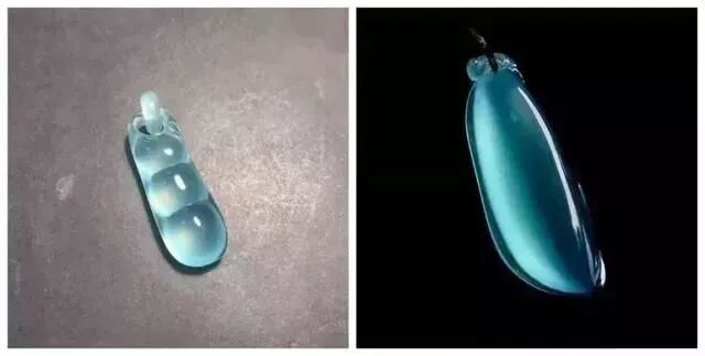 玻璃种的蓝翡翠有比较好的莹光效果,就算是颜色稍微偏灰,价格也会高达几万甚至是十几万。