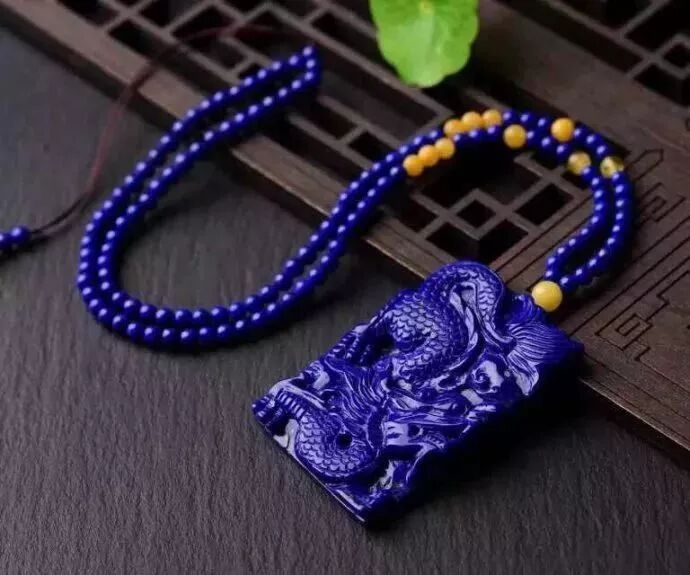 特点:青金石一般呈蓝色,颜色由所含青金石矿物含量的多少决定。好的青金石,颜色是纯正的深蓝,质地细腻,无裂纹、无杂质,可以当珠宝材料。