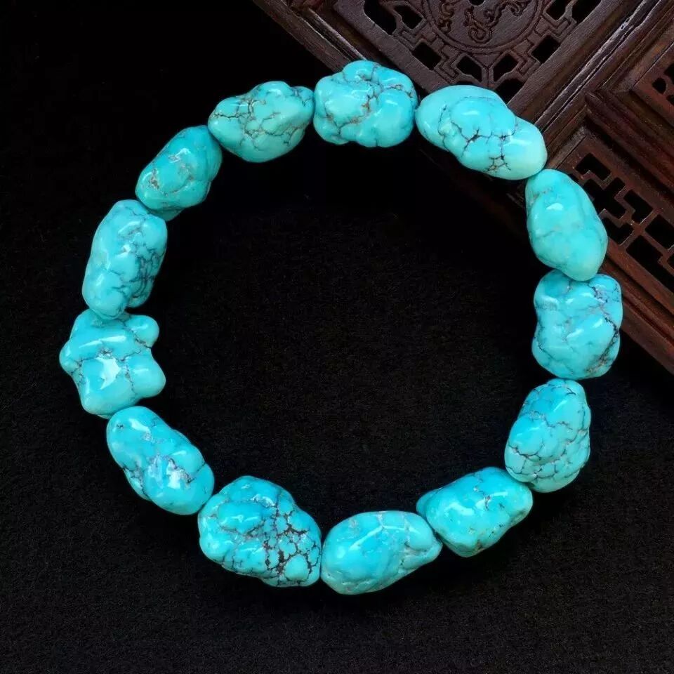 特点:所谓“瓷蓝”绿松石,就是无论在自然光下,还是在室内暗光下都是蓝色的,而不是那种室内偏蓝、室外偏绿,是绿松石中的极品之一。