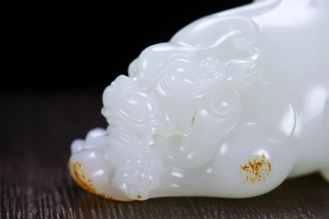 而染色、二上色、注胶这类造假也不难,染色的皮色鲜艳轻飘,感觉颜色妖艳浮在玉器表皮一般。注胶,用紫光灯就可以找出来,注胶的地方显出来白色。而用去黑去杂药水泡过的,玉质会变得很干涩。